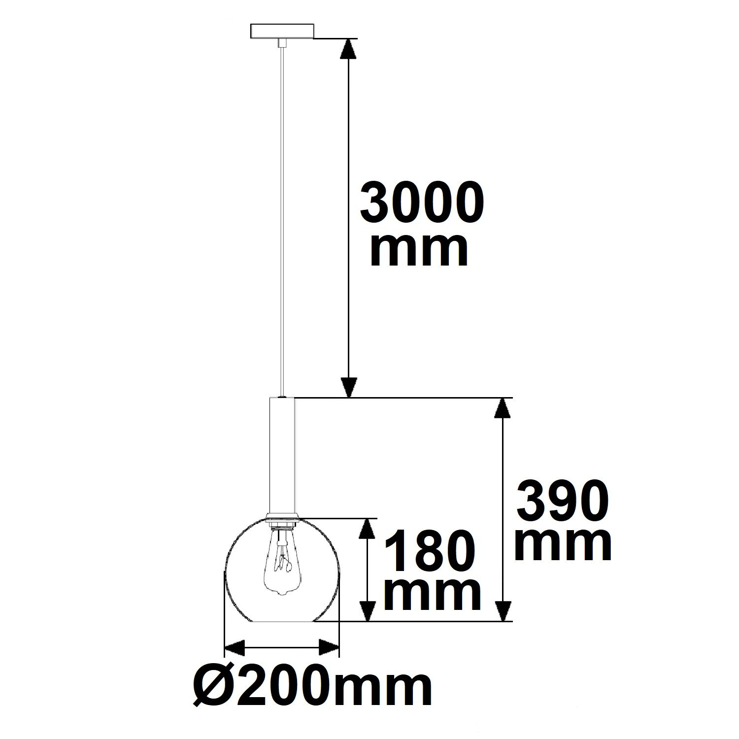 Lampă suspendată elegantă cu glob din sticlă rotundă neagră, echipată cu soclu E27. Diametrul globului este de 20 cm, iar lungimea cablului este ajustabilă între 50 și 300 cm, oferind flexibilitate în poziționare. Acest corp de iluminat se potrivește perfect în interioare moderne sau industriale și este ideal pentru living, dining sau spații comerciale. Becul și rozeta de tavan nu sunt incluse, oferindu-ți libertatea de a le alege separat pentru un aspect personalizat.