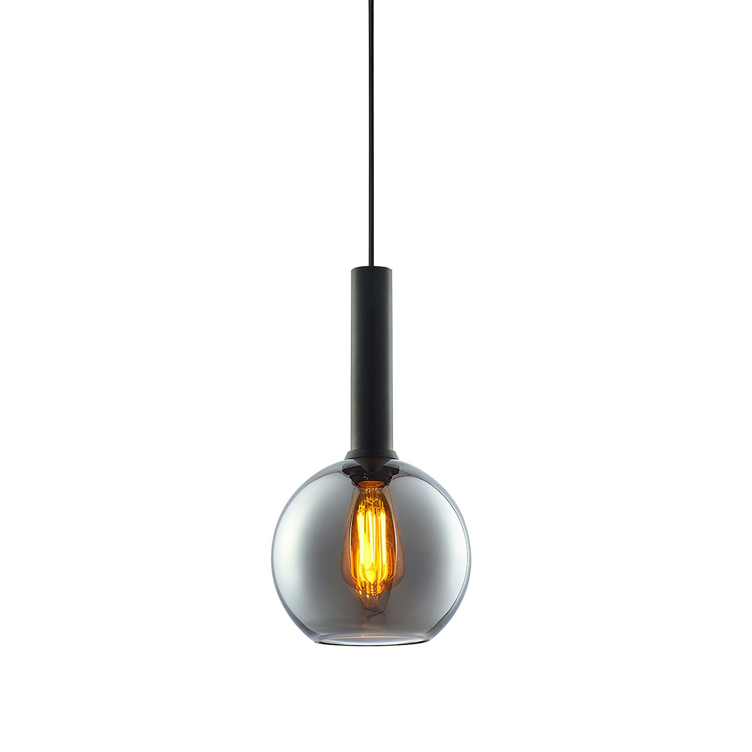 Lampă suspendată cu glob din sticlă rotundă neagră, E27, Ø20cm, cablu 50–300cm, fără bec și fără rozeta de prindere