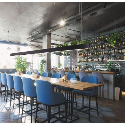 Lampă suspendată LED cu design modern și funcționalitate dublă Up&Down – emite lumină atât în jos, cât și în sus pentru o iluminare echilibrată a spațiului. Echipată cu difuzor prismat pentru reducerea efectului de orbire și dispersia uniformă a luminii. Se poate conecta la 90° cu alte corpuri identice, ideală pentru birouri, spații comerciale, showroomuri și interioare arhitecturale. Carcasa este din aluminiu finisat negru și are o lungime de 1200 mm. Temperatura de culoare alb cald (warm white) oferă o lumină plăcută și confortabilă.