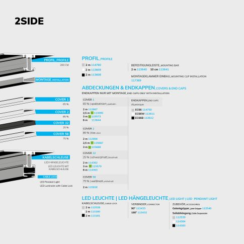 Profilul LED 2SIDE din aluminiu argintiu este un profil suspendat cu iluminare pe ambele fețe (sus și jos), oferind un efect de lumină uniform și elegant.